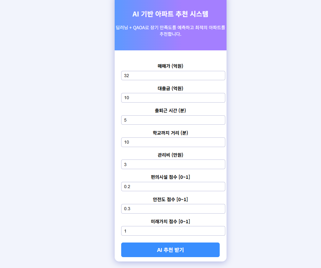 <p style="font-size:1em;margin-top:4px;">딥러닝 + QAOA로 장기 만족도를 예측하고 최적의 아파트를 추천합니다.</p>